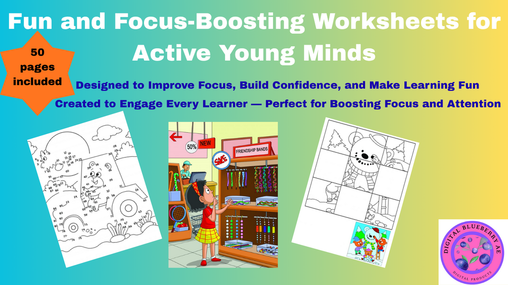 Help your child stay engaged, focused, and full of joy with this vibrant 50-page interactive activity bundle — thoughtfully designed for kids aged 6 to 8! This bundle is packed with creative, brain-boosting activities that make learning fun and rewarding. Whether you're a parent, teacher, or caregiver, these colorful worksheets are perfect for home or classroom use.